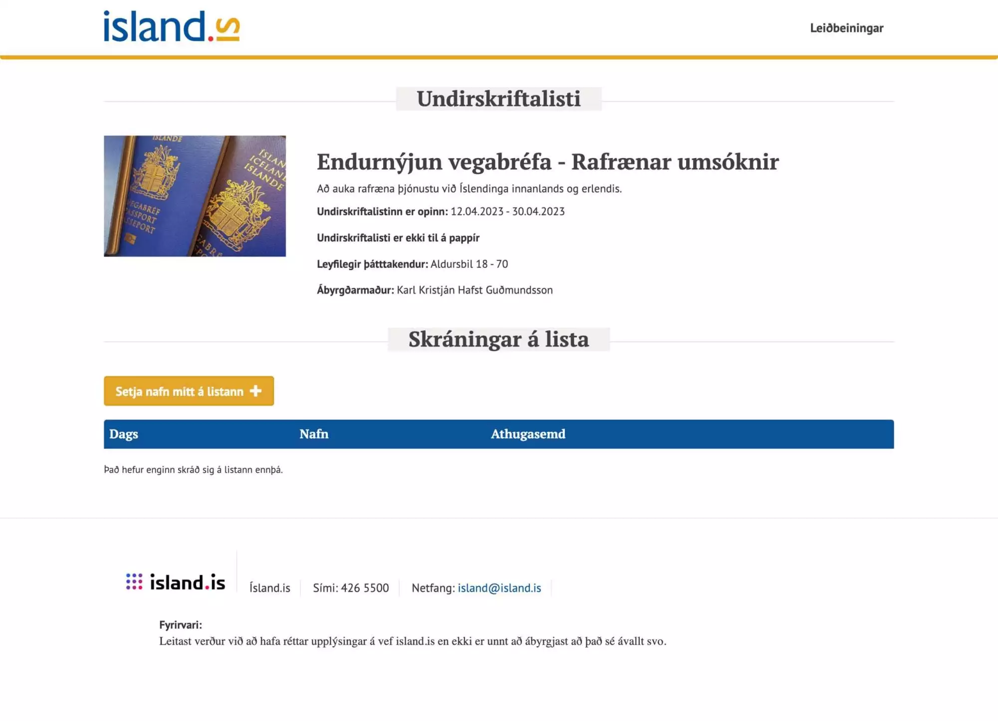 Endurnýjun vegabréfa – Rafrænar umsóknir