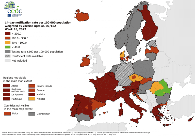 Smittíðni á Spáni og Íslandi 12. maí 2022