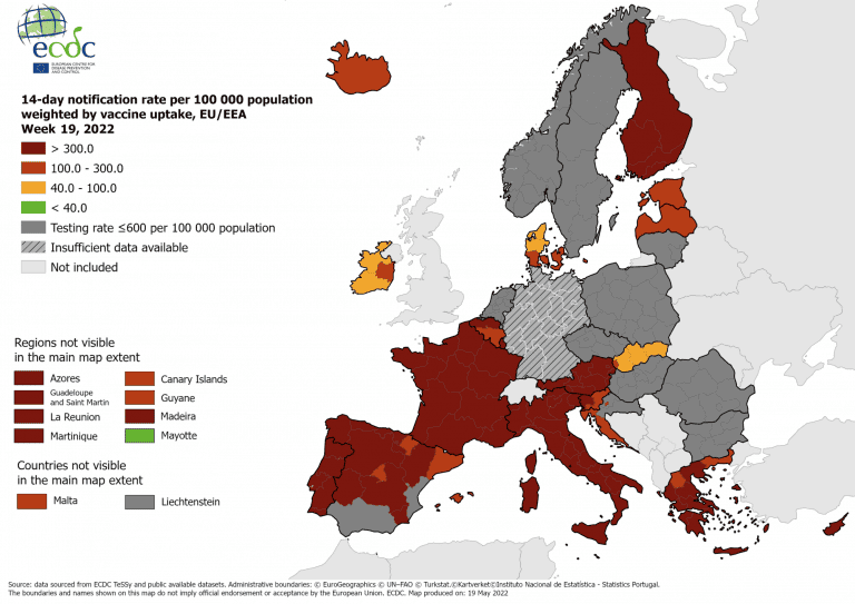 Smittíðni á Spáni og Íslandi 19. maí 2022,