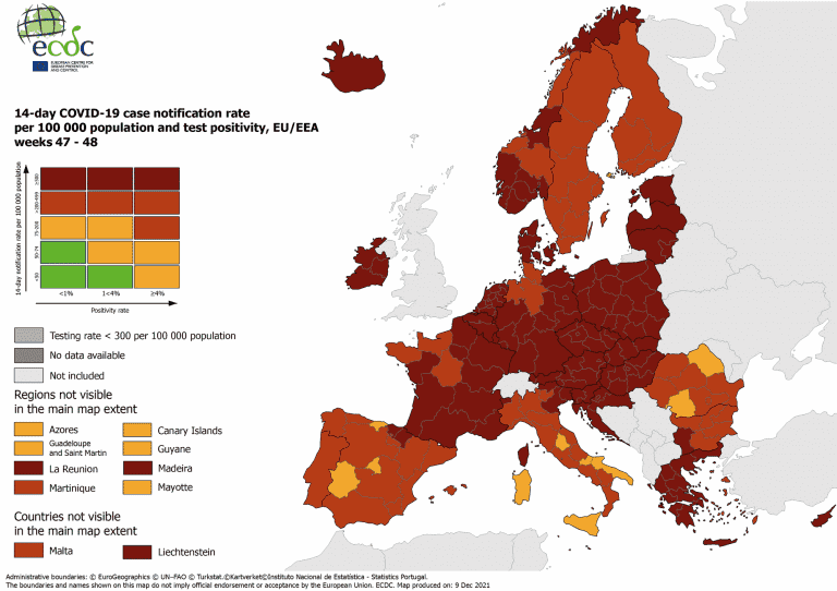 Smittíðni á Spáni 9. desember 2021